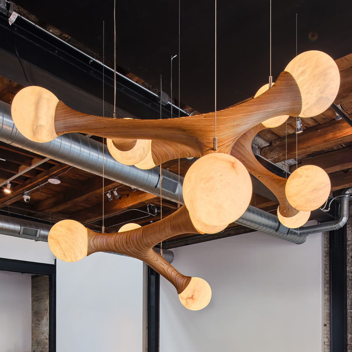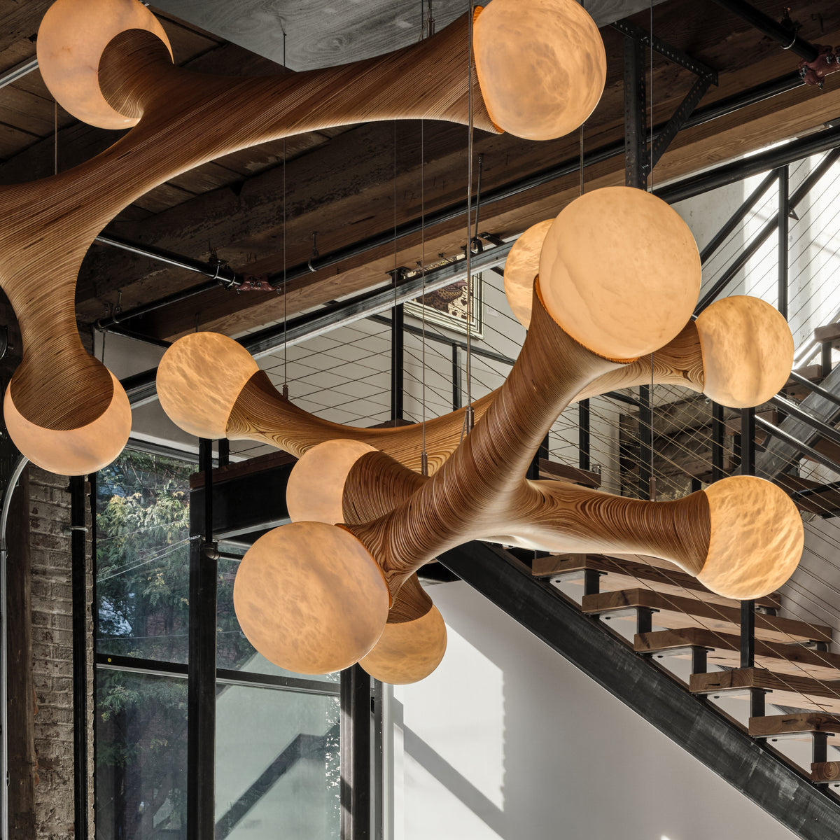 Much of Ardolino’s recent work is made using Futurewood, a material process developed in-house. Data is translated into geometry. Geometry becomes form. Pieces are carved, assembled, and finished entirely in the studio. The output includes lighting, furniture, and limited-edition sculptural objects.